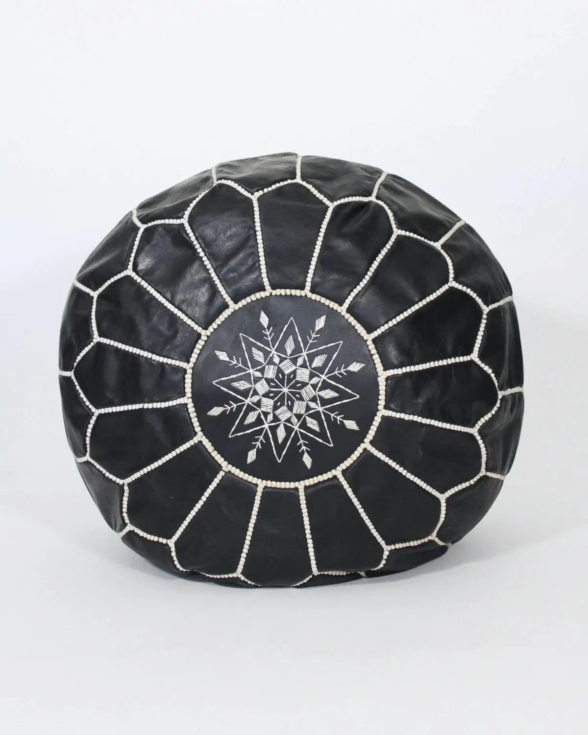 Zwarte Marokkaanse ronde leren poef
